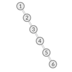 다만 1,2,3,4,5,6을 트리에 순서대로 넣는다고 가정했을 경우 아래와 같이 한쪽에 편향된 트리가 만들어지게 되는데 이러한 문제를 해결한것이 레드-블랙 트리이다.